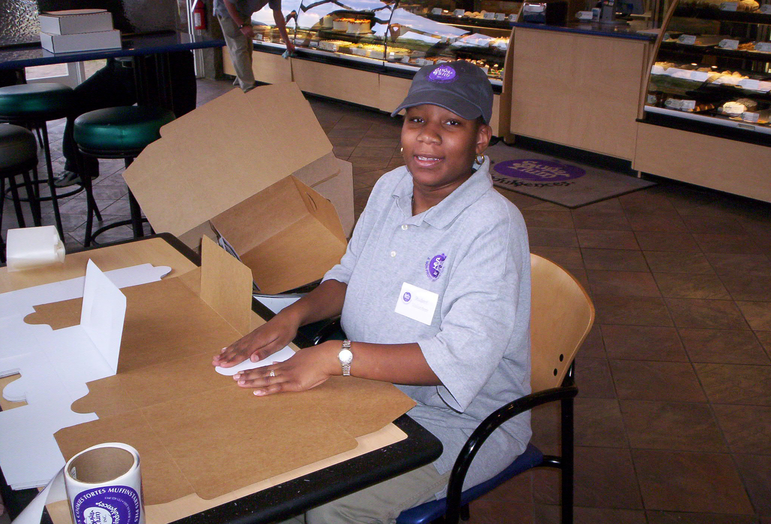 We began to offer a job skills training program for individuals receiving waiver services. Individuals learned how to complete many jobs at the bakery such as scooping cookies, depanning, cakes, greasing cake pans, folding boxes and making cupcakes.